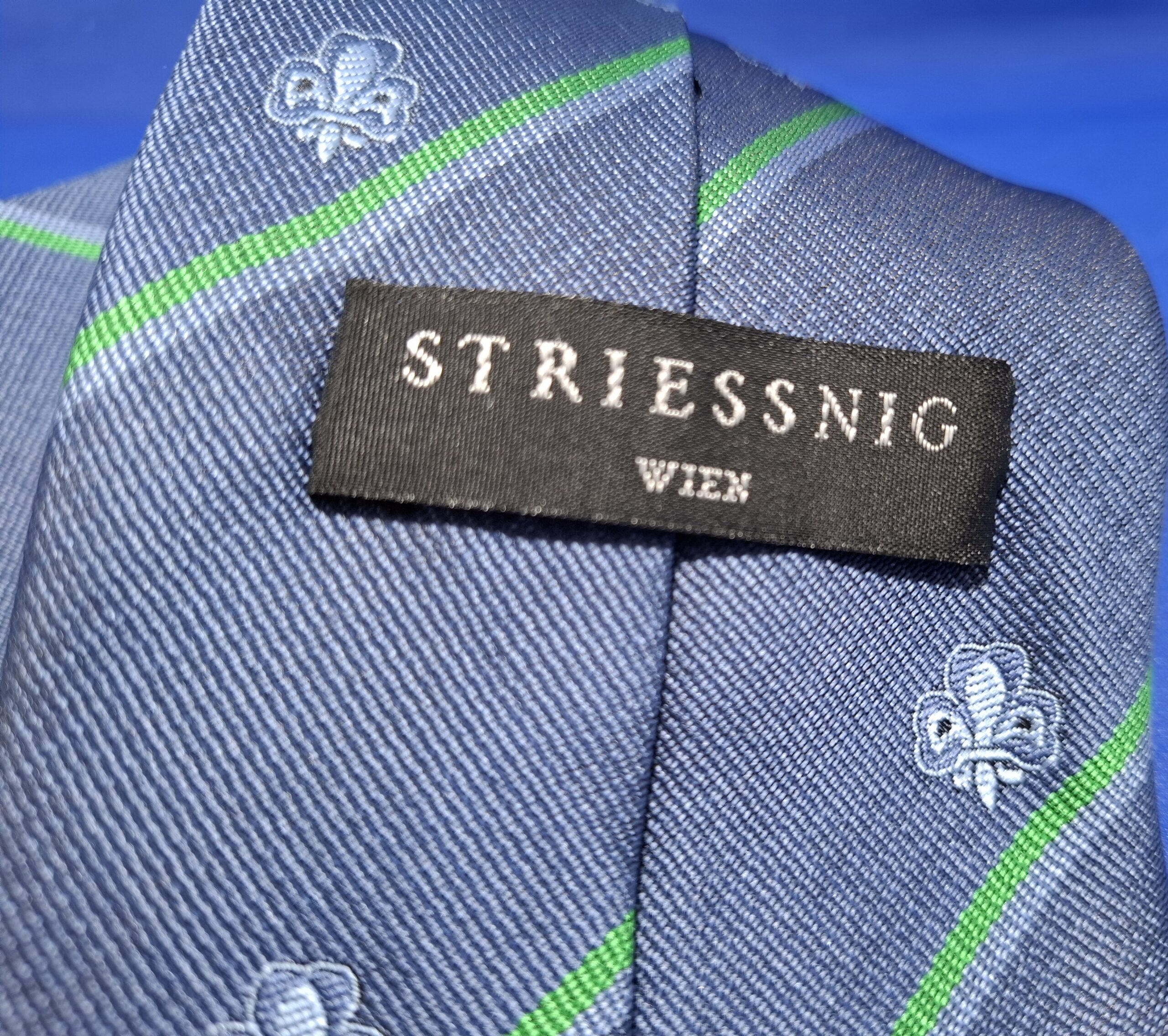 Gilde Krawatte, hellblau mit PGÖ Logo und grünen Streifen,